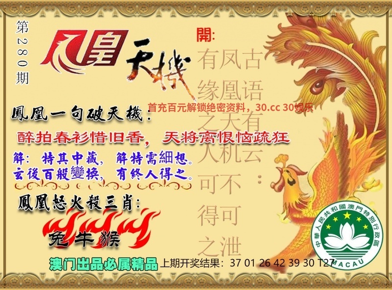 280期:醉拍春衫惜旧香,天将离恨恼疏狂 推荐肖:马羊龙鼠 |